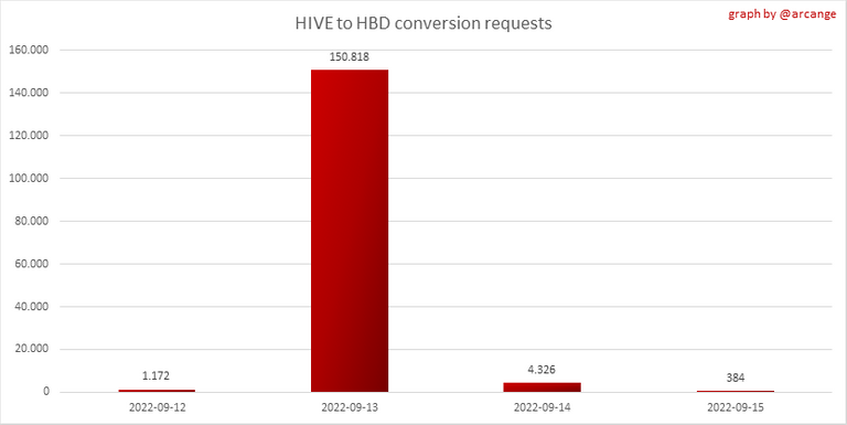 Note: As a reminder, conversion requests are only finalized after 3 days. It is only then that it is known exactly how many HIVE were burned in return for the HBD received at the time of the conversion request.