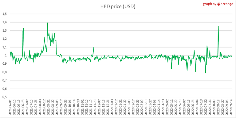 These graphs show the evolution of prices in USD for HIVE and HBD.