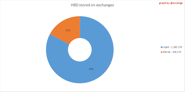 These graphs show the amount and distribution of HIVE and HBD stored on the exchanges where they are listed.
