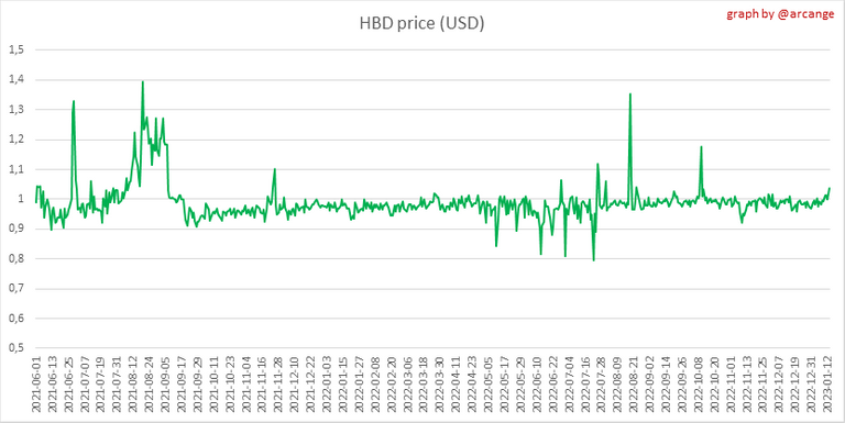 These graphs show the evolution of prices in USD for HIVE and HBD.