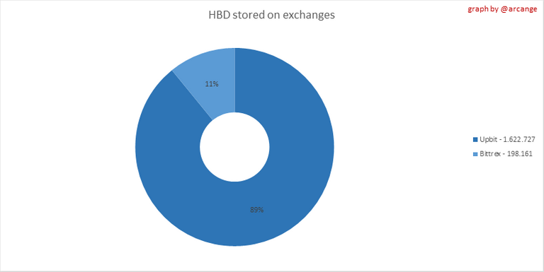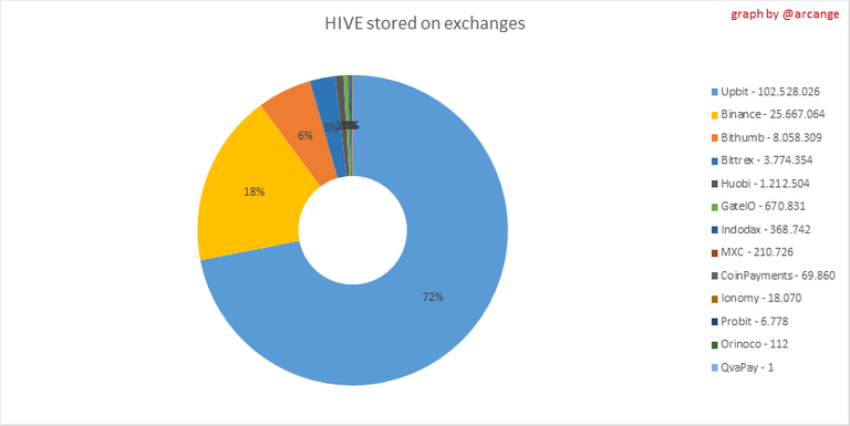 These graphs show the amount and distribution of HIVE and HBD stored on the exchanges where they are listed.
