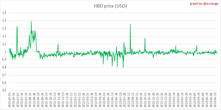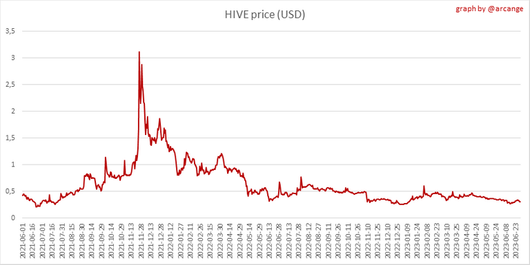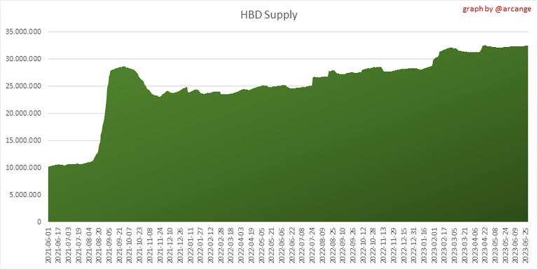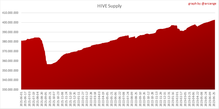 This graph shows the evolution of HIVE virtual Supply. The virtual supply is the sum of HIVE supply (liquid and staked HIVE) and HBD supply (converted into HIVE).