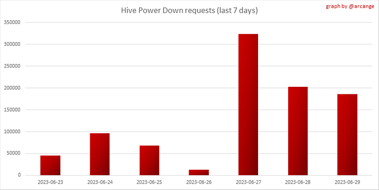 This graph and table show the amount of powerdown initiated over the last 7 days, and the largest initiated on this day.