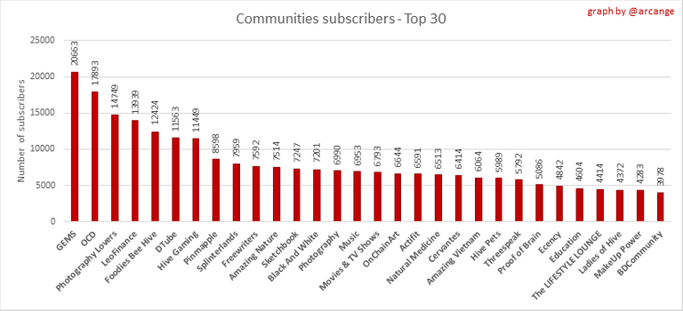 This graph shows the communities with the most subscribers.