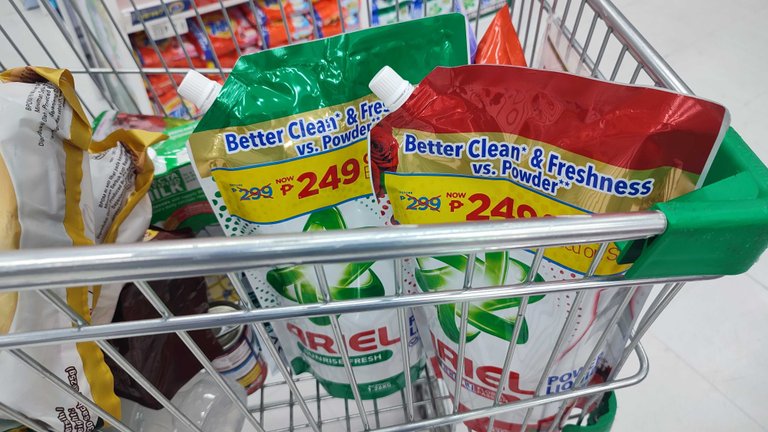 Yesterday was payday sale, so I took advantage of the discounted prices and bought some items. I primarily focused on cleaning materials for laundry and dishes, as those are essential for our household. During the sale, I rarely purchased food items because they were either nearing their expiration date or not popular brand, which is why they were discounted.