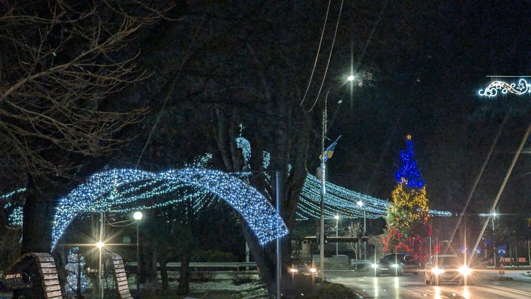 My town at night.