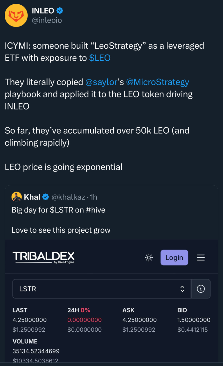 But they are not competitive ecosystems. LEO's success is Hive's success and vice versa