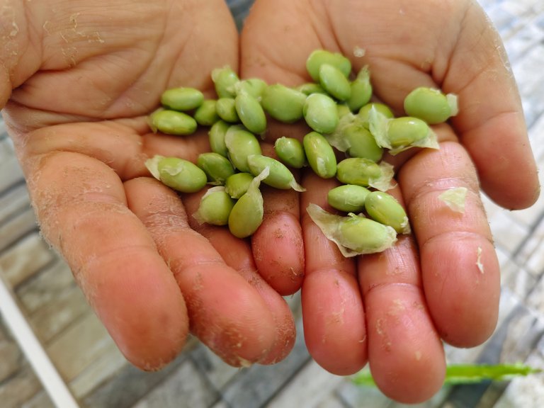 My wife didn't harvest all the edamame. Some were left on the plants. I want old edamame to use the old seeds for planting next time. And I plan to plant them in plastic pots next week. I'm waiting for the plastic pots I ordered from an online shop, and they will be delivered to my home next week. These are old edamame for planting next time.