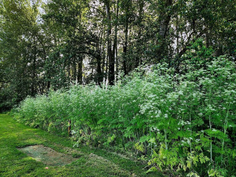 We weren't sure what these were exactly but thought they might be hemlock or related to it. It is poisonous if eaten and irritating if it gets on your skin and you are exposed to sun from what I have heard.