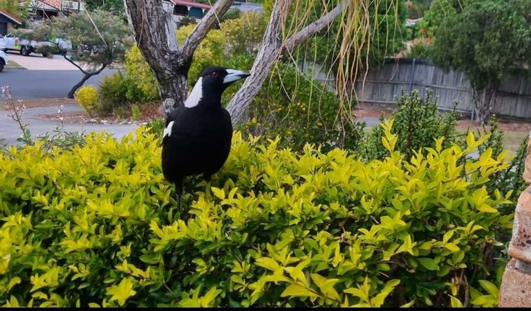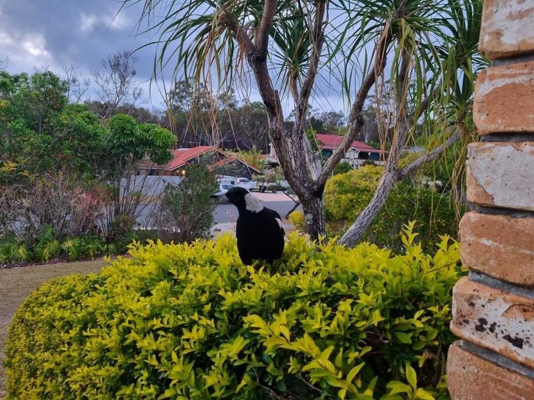 We have some new friends. It appears some magpies must have moved into the trees near our house. They seem very friendly and often move close to where we are to see what we are doing. Maybe they're just looking for food, but they seem to just be happy to hang about for a while.