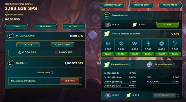 For staked rewards, I get 0.424 of vouchers and 5.244 of SPS.