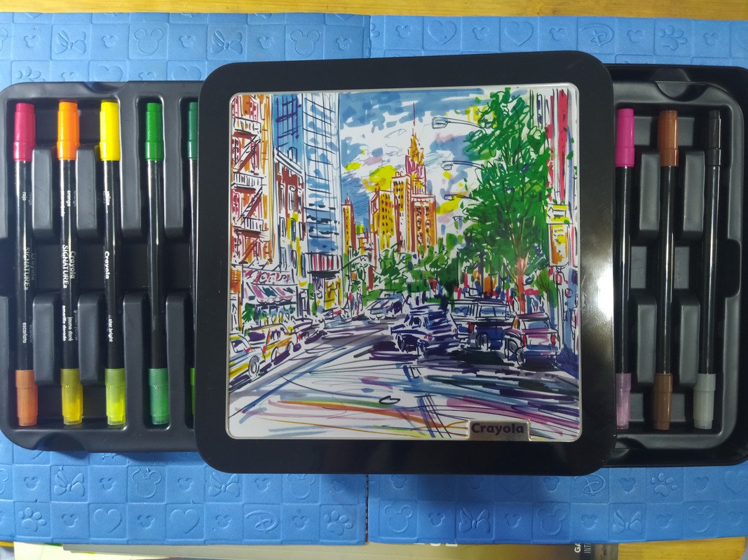 En esta ocasión utilice los marcadores de Crayola tienen punta pincel y punta fina, los adquirí el año pasado.