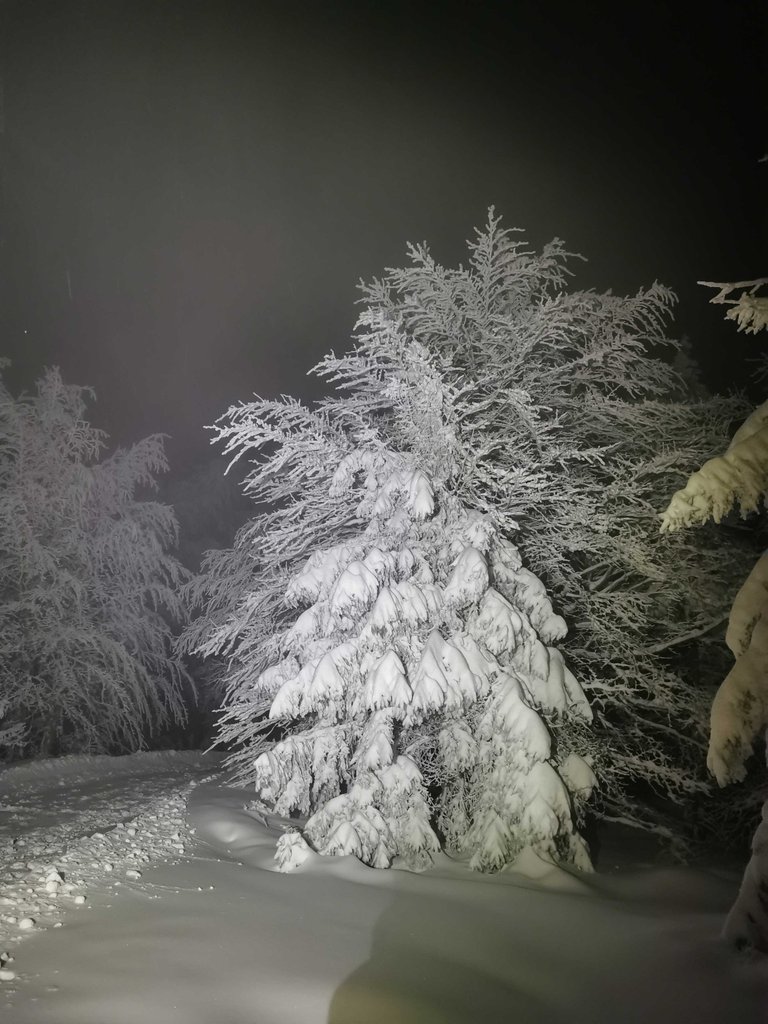 Ice and dark night.