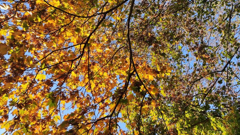 Dnes bolo krásne teplé slnečné počasie, radosť byť vonku. Jesennú atmosféru zvýrazňovali lúče slnka prechádzajúce pestrofarebnými listami stromov.