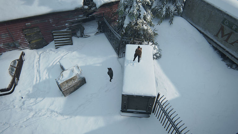Then I noticed that in order to get to that hole, I needed to get over the truck's engine, then to the container, and there was no other way except that. So I did all of that and got closer to the hole.