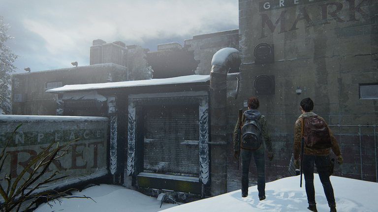 Last time, we cleared the super shop and found a van in a locked area. Got Dina up, spotted our next target building. Crawled through a passage under a truck, got ambushed, but Dina saved me.