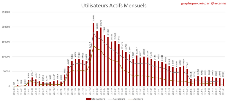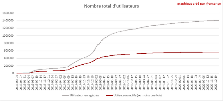 Le dernier graphique est un résumé mensuel des utilisateurs actifs. Attention en interpretant la valeur de la dernière colonne qui peut être largement inférieure si la fin du mois n'a pas encore été atteinte.