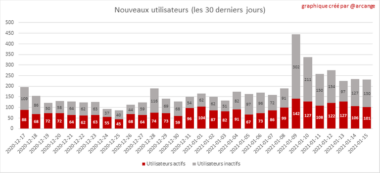 La partie grise de chaque colonne indique le nombre de comptes inactifs (ceux qui n'ont plus publié, commenté ou voté depuis 30 jours).