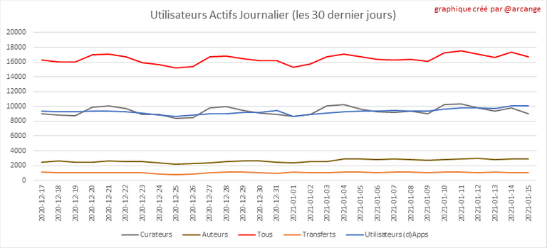 Toutes les informations présentées dans ce rapport sont basées sur les données collectées dans la blockchain jusqu'au 15-01-2021 à minuit, heure UTC. L'objectif de ce rapport est de vous fournir une vision claire de ce qui se passe quotidiennement dans la blockchain Hive.