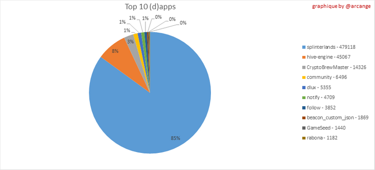 Ce graphique montre quelles sont les applications qui génèrent le plus d'activité (operations custom_json) sur la blockchain.