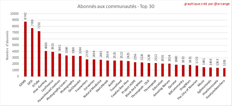 Ce graphique montre les communautés avec le plus d'abonnés.