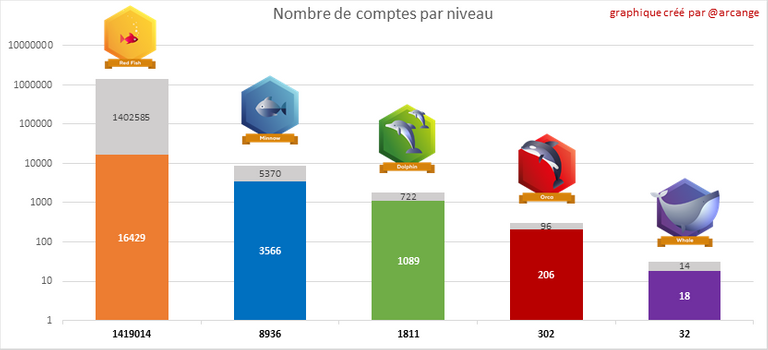 La partie grise de chaque colonne indique le Hive Power inutilisé par les comptes inactifs (voir la définition d'inactif ci-dessus).