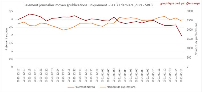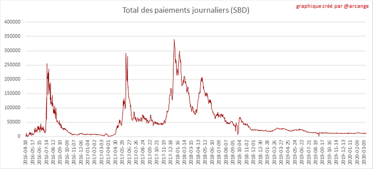 Ces graphiques montrent le total des paiements distribués (publications et commentaires) pour chaque jour.