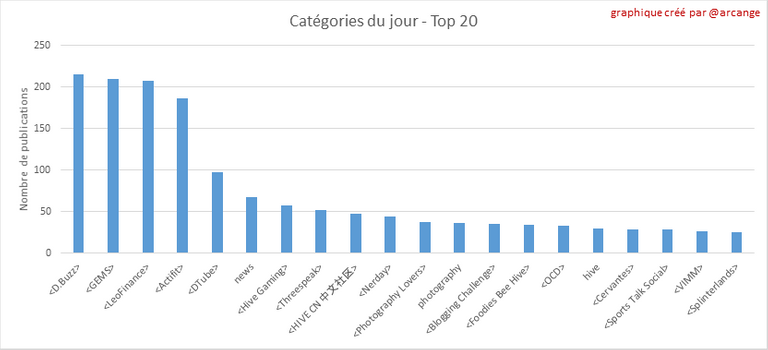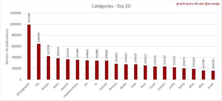 Ce graphique montre les catégories les plus utilisées pour les publications depuis la création de la blockchain et ce dernier jour.