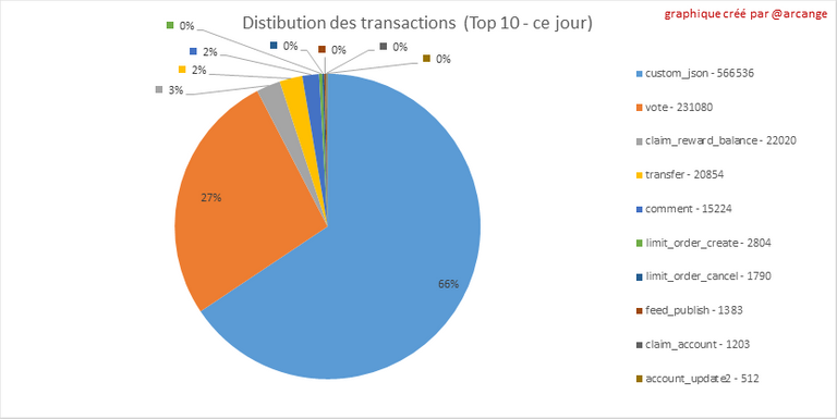 Ce graphique montre la répartition des 15 principaux types de transactions par nombre d'opérations effectuées sur la blockchain.